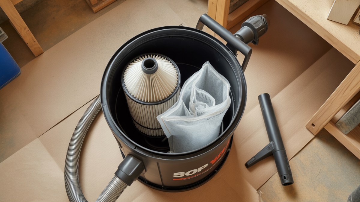 Sawdust, drywall dust, and garage grit each behave differently. A few minutes of setup prevents clogs and keeps the exhaust clean so you’re not breathing what you just vacuumed.